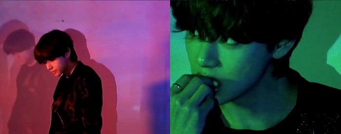 젤리를 먹으며 등장한 뷔는 다채롭게 빛나는 조명 아래서 신난 듯 춤을 추는 모습을 보였다. 유연하게 몸을 움직이고 카메라를 향해 미소를 짓는 뷔는 자유분방한 매력 그 자체였다.