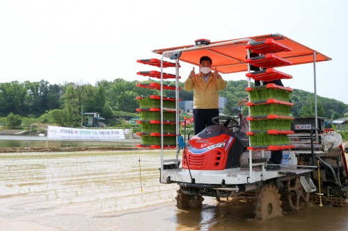 한편 FTA 대응 벼 생력재배 기술 시범사업은 농촌의 가속화 되는 고령화 및 노동력 부족을 해결하고 디지털 기술 실용화를 통한 농업경쟁력 향상을 목적으로 사업비 2억 원(국비 50%, 시비 50%)을 투입해 시 대월면 송라리 일대 벼 재배면적 50㏊에 추진되고 있다.