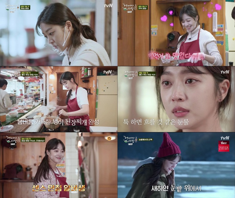 등장하자마자 ‘아르바이트계의 황금 손’으로 환영받은 조보아는 도착과 동시에 카운터에서 손님을 응대하고 가져온 짐을 정리하는 등 지난 SBS ‘골목식당’에서 활약했던 경력직의 면모를 발휘했다. 펑펑 눈이 내리기 시작하자 가게 앞뿐만 아니라 옆 가게의 눈을 치우고, 또 염화칼슘에 강아지들의 발이 다칠까 걱정하는 다정다감한 모습으로 훈훈함을 자아냈다.