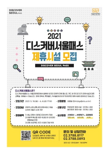 선정된 제휴 시설은 디스커버서울패스 홈페이지 등록 및 해외 온·오프라인 홍보 참여가 가능하며, 올해 9월 출시 예정인 내국인 대상 관광 패스에도 제휴 기관으로 참여 기회를 부여한다.