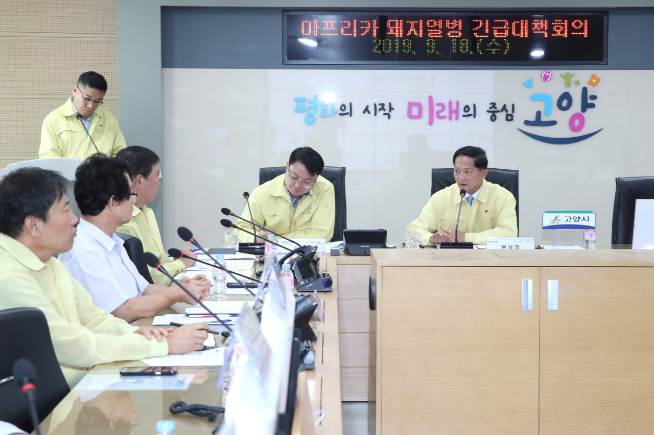경기도 고양시는 인접지역인 파주에 이어 연천에서도 아프리카돼지열병(ASF)이 추가로 확진됨에 따라 18일 오전 ‘아프리카돼지열병 긴급대책회의’ 열고 돼지열병의 전국적 확산을 막기 위한 24시간 방역시스템 강화에 나섰다.