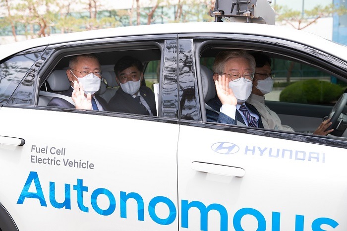 이재명 지사는 이날 참석자들과 미래차 산업 발전을 위한 방안을 논의한 뒤 수소차 공기정화 및 전기차 초고속 충전기 시연·발표 등 기술전시 현장을 면밀히 살피고 자율주행차 및 수소버스 등을 시승하며 미래차를 직접 체험해보는 시간을 가졌다.
