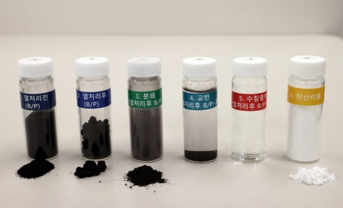폐배터리에서 탄산리튬을 추출하기 위해서는 ▲열처리* ▲산침출(산성 용액으로 재료를 녹이는 작업) ▲결정화 공정을 거치는데 이 과정에서 일반적으로 황산 등 화학물질이 사용된다.