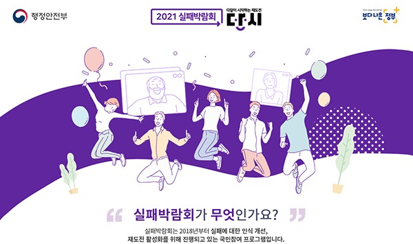 한편 실패박람회는 2018년 행안부와 중기부가 국내 최초로 ‘실패’를 주제로 공동으로 개최한 박람회로, 그동안 실패에 대한 인식개선 행사를 진행하며 재도전을 응원하는 사회적 분위기 조성의 기반을 마련했다.