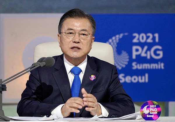 문 대통령은 ‘2021 P4G 서울 녹색미래 정상회의’ 이틀째인 이날 정상 토론세션에서 “기후 문제에는 국경이 없다. 선진국과 개발도상국이 서로 다른 경제·사회적 여건을 이해하며 연대해 나가는 것이 매우 중요하다”며 이같이 말했다.