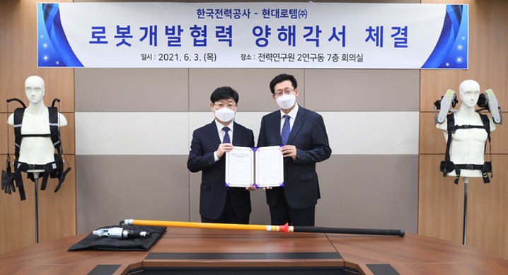 현대로템은 3일 대전에 위치한 한전 전력연구원에서 한전과 ‘전력분야 공사작업자 안전 및 근력보강용 로봇 개발’에 대한 업무협력 양해각서(MOU)를 체결했다고 4일 밝혔다.