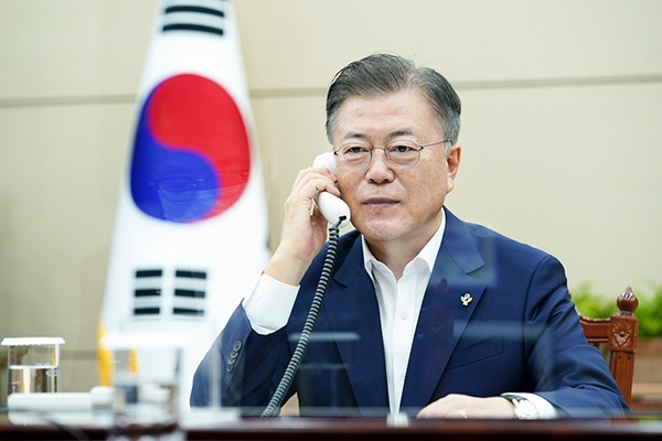 문재인 대통령은 3일 오후 5시 15분부터 30분간 보리스 존슨 영국 총리와 전화 통화를 갖고 서울 P4G 정상회의(5월 30~31일)와 G7 정상회의(이달 11~13일, 영국 콘월) 및 양국 간 현안과 상호 관심사에 대해 의견을 교환했다고 박경미 청와대 대변인이 서면 브리핑을 통해 전했다.