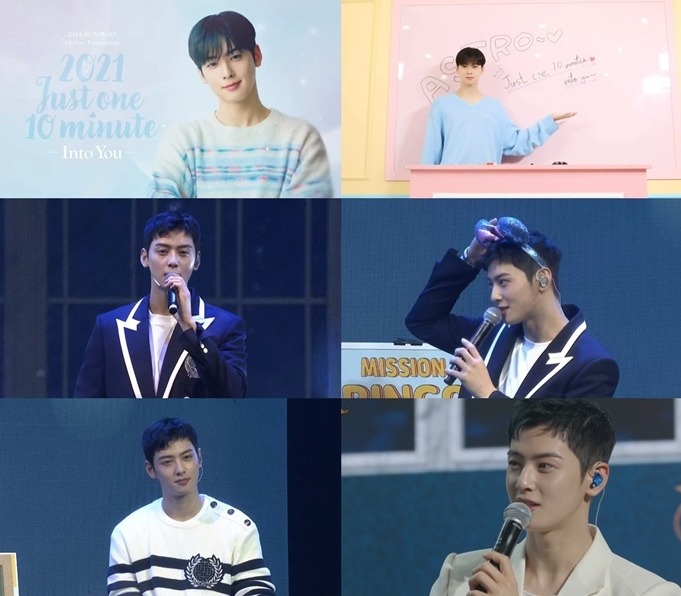 ‘저스트 텐미닛 운동회’ 미션을 성공한 차은우는 “아로하분들이 보고싶다면 미션 실패 벌칙을 하겠다”라며 팬사랑을 드러냈고, 벌칙으로 정규 2집 타이틀곡 ‘ONE’에 맞춰 댄스를 선보였다.