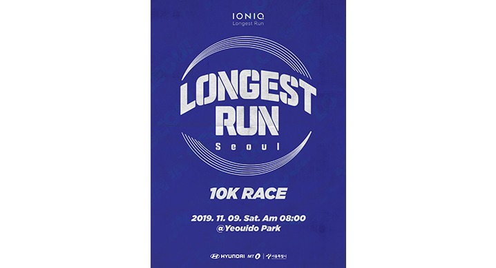 ‘롱기스트 런 인 서울’은 지난 7월 24일부터 약 3개월간 진행된 ‘2019 아이오닉 롱기스트 런’을 마무리하는 러닝대회로 오는 11월 9일 열리며, 서울 여의도 공원에서 출발해 서강대교 등 여의도 일대 10km 구간을 달리는 러닝대회다.