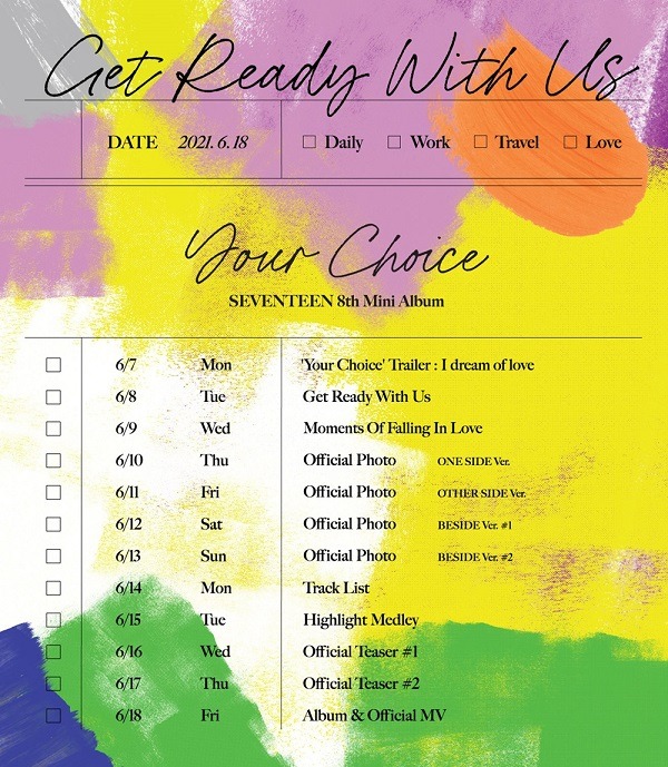 세븐틴은 오는 18일 미니 8집 ‘Your Choice’ 발매를 앞둔 가운데, 오늘(8일) 0시 공식 SNS를 통해 ‘Your Choice’의 프로모션 스케줄러 이미지를 공개해 컴백 열기를 고조시켰다.