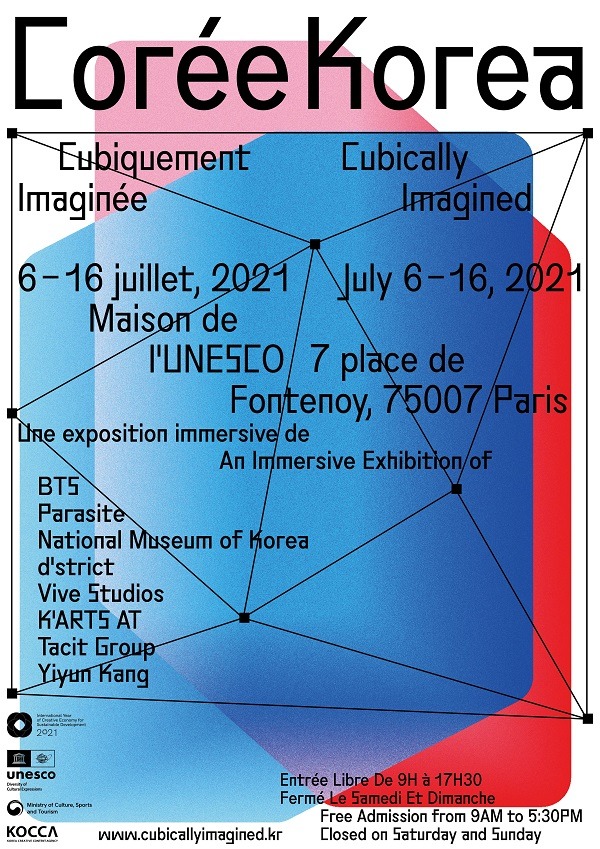 봉준호 감독의 영화 <기생충>, 방탄소년단의 콘서트 등 한류 대표 콘텐츠를 활용한 융복합 실감콘텐츠 전시회 ‘한국 : 입체적 상상(Korea : Cubically Imagined)’이 프랑스 파리 유네스코 본부에서 오는 7월 6일부터 16일까지 개최된다.