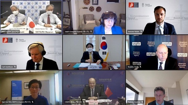 화상회의로 진행된 이번 회담에서는 특허분쟁 환경 변화에 따른 기관 간 협력 방안을 논의했다. 5개국 특허심판 기관장과 WIPO가 모두 한자리에 모인 공식회담은 이번이 처음이다.
