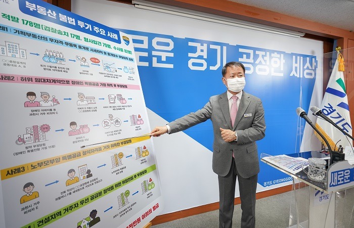 친인척 명의로 토지를 매입한 후 지분쪼개기 방식으로 부당이익을 취한 기획부동산과 지난해 과천지식정보타운 분양 아파트 부정청약자 등 불법 부동산투기자 178명이 경기도 단속에 덜미를 잡혔다. 이들이 얻은 불로소득은 1,434억 원에 달한다.