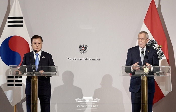 한편 문 대통령은 “4차 산업혁명 시대를 여는 데 양국은 서로에게 매우 중요한 파트너”라며 “기초과학 분야에서 다수의 노벨상 수상자를 배출한 오스트리아의 뛰어난 과학기술 역량과 세계적인 수준의 상용화, 산업화 능력을 갖춘 한국 기업들의 결합을 통해 호혜적인 협력 성과를 도출하기로 합의했다”고 설명했다.