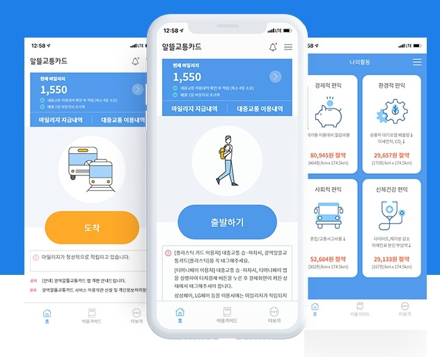 알뜰교통카드는 국민 교통비 절감을 위해 추진되는 사업으로 대중교통 이용 시 보행·자전거 등 이용거리에 따라 마일리지를 지급하고 카드사가 교통비를 추가 지원하는 사업으로, 이용자는 대중교통비의 최대 30%를 절감할 수 있다.