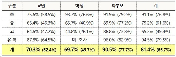 2021학년도 2학기 등교 확대 추진에 대해 학부모·교원·학생을 포함한 81.4%가 긍정적이라고 답했다.