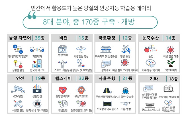 정부가 지난해부터 구축한 인공지능(AI) 학습용 데이터 170종을 개방한다.