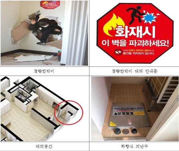 먼저 화재 시 공동주택의 입주민들이 경량 칸막이·대피공간·하향식 피난구 등 피난시설을 직접 이용해 대피할 수 있도록 설치된 위치와 사용법을 승강기용 TV, 공동게시판 등에 안내한다.
