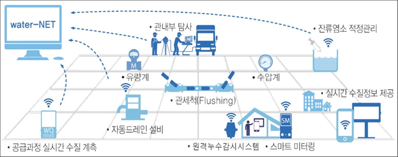 시스템이 구축되면 물 운영 현황판을 통해 실시간으로 유량, 수압, 수질(잔류염소, 탁도 등), 누수를 실시간으로 감시하며, 혹시 모를 사고에 선제적으로 대응이 가능해진다. 시민들은 수질 전광판, 스마트폰 앱을 통해 언제든 상황을 확인할 수 있다.