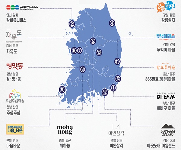 이에 지난 2018년 전남 목포시 ‘괜찮아마을’, 2019년 충남 서천군 ‘삶기술학교’, 2020년 경북 문경시 ‘달빛탐사대’ 등에 해마다 1개씩 시범 조성되었는데, 올해는 12곳으로 대폭 확대됐다.