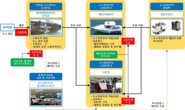 ② ‘수소연료전지 선박용 수소충전소 구축 실증’은 현행 법규로는 수소충전소의 충전 대상이 자동차로만 국한되어 있어 특례를 통해 충전 대상을 국내 최초로 소형선박까지 확대한 것이다.