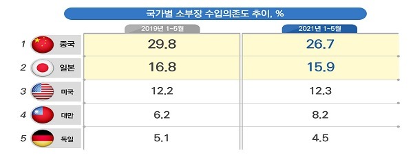 또, 2년이라는 짧은 기간 동안 100대 핵심품목에 대한 대일 의존도(HS코드 기준)가 31.4%에서 24.9%로 약 6.5%p 감소했다.