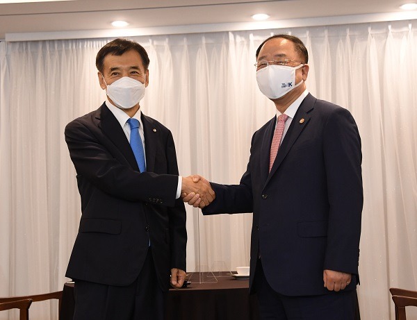홍남기 경제부총리와 이주열 한국은행 총재는 재정·통화정책은 경제상황과 역할에 따라 상호 보완적으로 운용되는 것이 바람직하다는데 뜻을 같이했다.