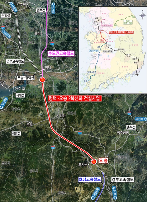 경기도 건의로 추진된 ‘평택~오송 2복선화 건설사업’이 최근 기본계획 확정으로 사업 추진에 날개를 달게 됐다. 이에 따라 수도권과 호서·영남·호남 지역을 잇는 고속철도의 확대와 보다 원활한 운행이 가능해질 전망이다.