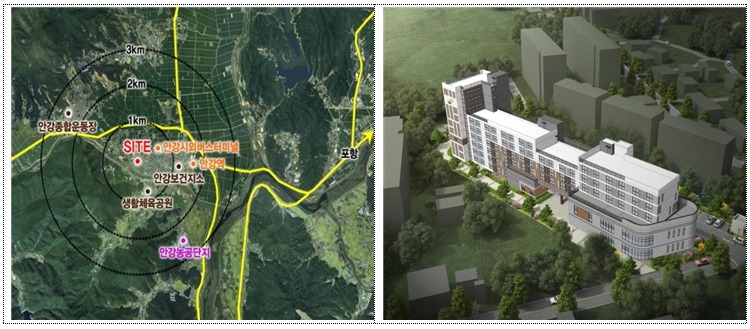 단지 인근에 시외버스터미널(0.5㎞), 안강역(2㎞)이 있어 교통여건이 양호하고 북경주 행정복지센터(1.5㎞), 안강중앙병원(0.5㎞), 안강시장(1㎞) 등 행정·의료·편의시설도 가까워 생활여건이 뛰어나다.