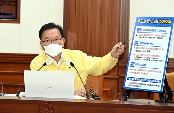 김 총리는 “우선은 발등에 떨어진 불을 꺼야 한다”며 “정부는 수도권의 젊은 층 보호에 초점을 맞춰 추가적인 방역대책을 시행하고 현장의 이행력 확보에 역점을 두어 더 강력하게 대응하겠다”고 밝혔다.