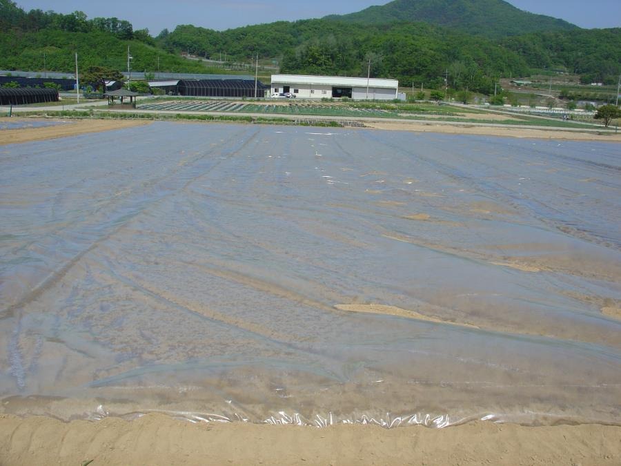 이번에 소개하는 연작 장해 종합방제기술은 7월 하순 풋거름 작물(녹비작물)을 토양에 넣어주고, 8월 하순까지 투명비닐로 덮어 태양열 소독을 한 다음 9월에 토양 훈증제(다조멧 입제)로 한 번 더 소독하는 방법이다.