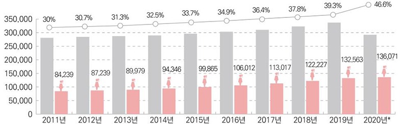 아울러 지방자치단체 내에서 핵심부서로 여겨지는 기획, 예산, 인사, 감사 담당부서, 실·국 주무과의 여성공무원 비율도 2011년 32.1%에서 지난해 43.3%까지 늘었다.