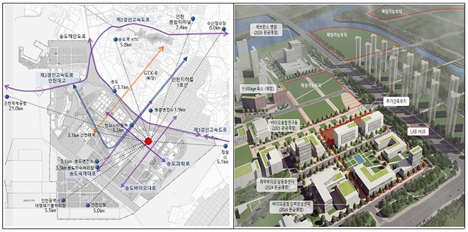 후보지로 선정된 인천 송도 지역은 삼성바이오로직스, 셀트리온 등 국내 대표적인 바이오 앵커기업과 함께 송도 세브란스 병원 등 병원, 연구소 등이 집약돼 있어 산·학·연·병 협력 네트워크가 중요한 ‘K-바이오 랩허브’에 적합하다는 평가를 받았다. 부지 무상제공, 높은 재정 지원계획 등 사업계획도 높은 점수를 얻었다.
