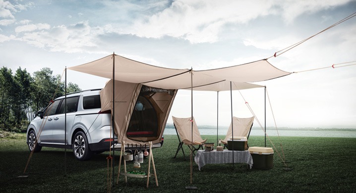 이와 더불어 기아는 카니발의 공간 활용성을 더욱 높여줄 텐트, 멀티 커튼, 에어 매트 등 캠핑과 차박에 활용할 수 있는 용품을 기아멤버스 카앤라이프몰에서 판매한다. (※ 자세한 사항은 홈페이지 참조 kia.auton.kr)