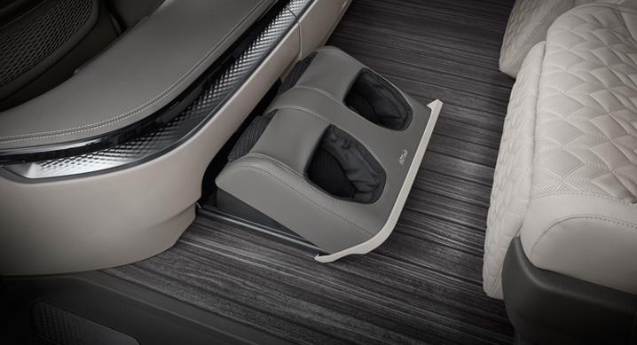 기아 최초로 4인승 모델에 적용된 발 마사지기는 헬스케어 전문 기업 ‘휴테크’와 협업해 개발한 것으로, 후석 리무진 시트와 함께 장거리 이동에 지친 탑승객에 편안한 휴식 경험을 선사한다.