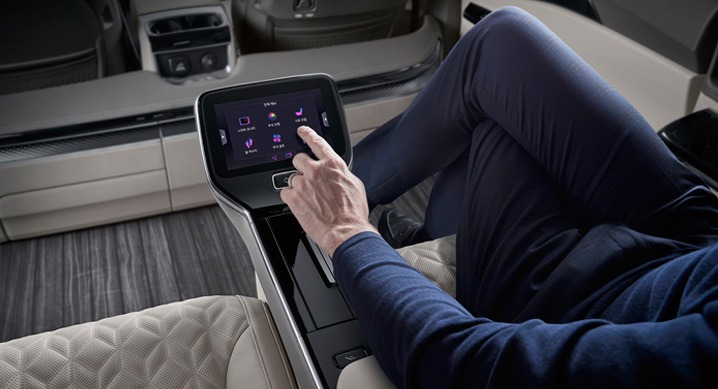 시트 외에도 후석 조명 및 공조, 21.5인치 스마트 모니터, 2열 좌측 전면부 하단에 위치한 발 마사지기 등을 통합 컨트롤러에서 간편하게 제어할 수 있다.