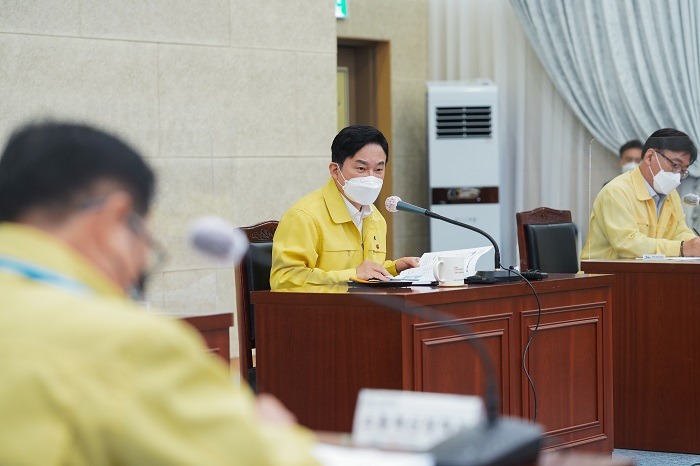 이날 회의에서는 제주 사회적 거리두기 단계 격상 조치계획과 함께 태풍·폭염 등 자연재난 종합대책, 휴가철 대비 관광지 방역 강화 계획 논의가 이어졌다.