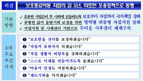 정부는 현행 아동복지법령 규정을 구체화해 자립지원 업무의 법적 근거를 명확히 하는 과제를 추진한다.