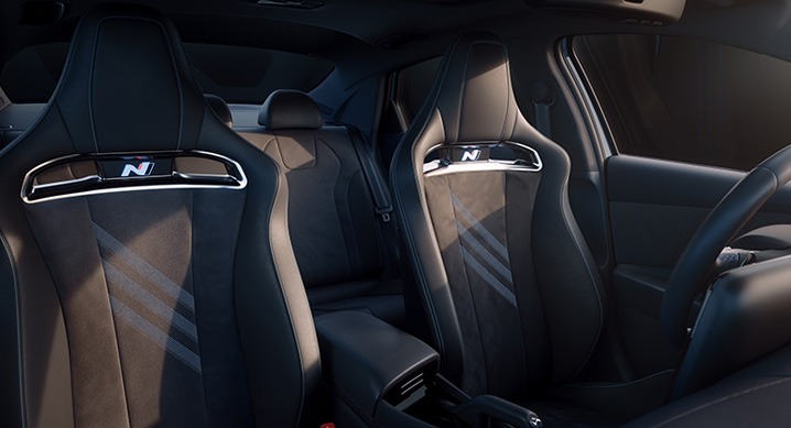 N 시트 또한 측면 볼스터 부분을 강화해 급격한 코너링 중 강한 횡가속도가 발생하더라도 상하체를 굳건히 지지해 항시 안정적인 운전자세를 유지할 수 있게 해준다. 여기에 N 엠블럼 조명이 장착되고 기본 사양 대비 시트 포지션이 10mm 하향된 N 라이트 버킷시트를 옵션으로 운영함으로써 고성능 감성과 운전성을 추구하는 고객까지도 배려했다.