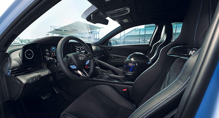 아반떼 N의 실내는 △N 스티어링 휠 △N 쉬프터 △N 시트 △N 도어스커프 △메탈 페달 등 곳곳에 N 브랜드 전용 아이템을 적용함으로써 N 패밀리 룩을 실현했을 뿐 아니라, 일상주행부터 역동적인 주행까지도 운전자가 편안히 운전에 집중할 수 있도록 최적의 운전환경을 조성하는데 주안점을 뒀다.