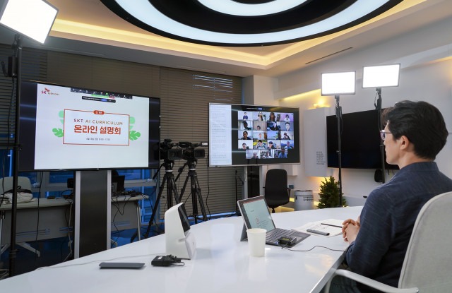 SKT는 13일 오후 전국 20여 개 대학에 SKT AI 커리큘럼을 소개하고, 올가을 학기부터 활용할 수 있는 강의 콘텐츠에 대해 설명하는 온라인 설명회를 개최했다. SK텔레콤 정영배 역량혁신팀장의 진행으로 진행된 설명회에는 전국 각지에서 100여 명의 교수진이 접속해 높은 관심을 보였다.