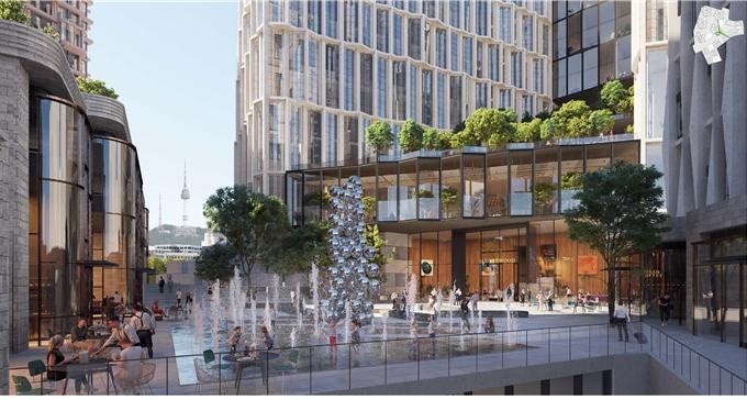 당해 사업부지에는 용산공원과 이태원 관광특구를 연결하는 길이 330m의 공공보행통로를 계획하고, 공공보행통로와 결합된 선형의 공개공지를 폭 17~36m로 조성하여 저층부의 대형 판매 복합몰, 녹지 및 문화공원을 연계시켜 지역 주민이 자유롭게 통행하며 역사와 일상, 축제와 문화를 즐길 수 있는 커뮤니티 공간으로 계획하였다.