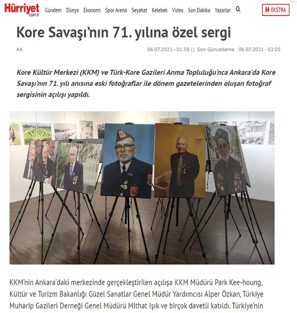 박기홍 원장은 “이번 한국전쟁 71주년 기념 사진전시회에 많은 터키 국민들과 한인들이 방문해 참전용사의 고귀한 희생정신을 배웠으면 한다”면서 “앞으로도 한국과 터키가 형제의 국가로서 다양한 분야에서 더욱 많은 교류가 이뤄지길 기대한다”고 전했다.