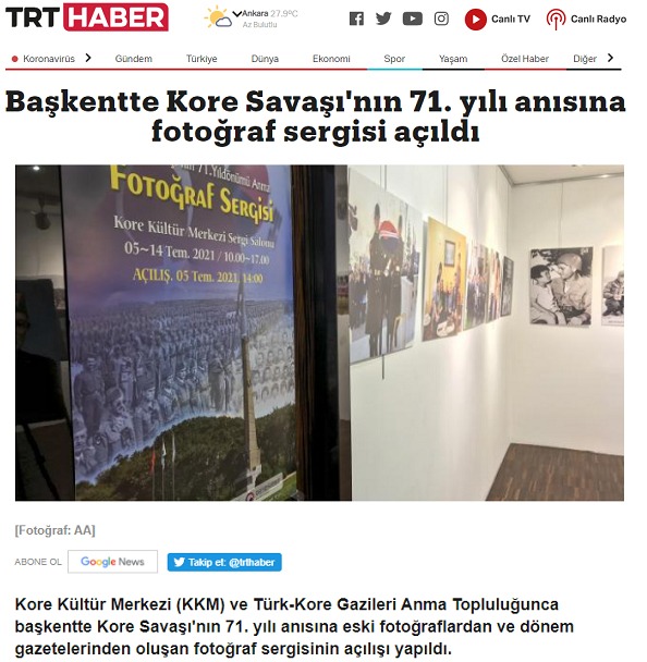 주터키한국문화원은 터키 한국전 참전용사 기념사업회와 공동으로 ‘한국전쟁 71주년 기념 사진전’을 지난 5일부터 14일까지 9일간 문화원 4층 전시실에서 개최했다고 밝혔다.