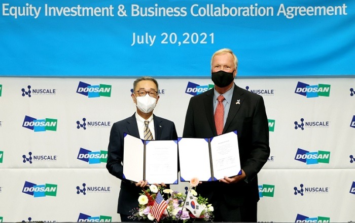 두산중공업은 20일, 뉴스케일파워(NuScale Power) 존 홉킨스 회장과 두산중공업 박지원 회장이 참석한 가운데 추가 지분투자에 대한 협약을 체결했다고 20일 밝혔다. 두산중공업은 지난 2019년 국내 투자사들과 함께 뉴스케일파워에 4,400만 달러의 지분 투자를 한 데 이어 이번에 국내 투자사들과 추가로 6,000만 달러를 투자하기로 했다.