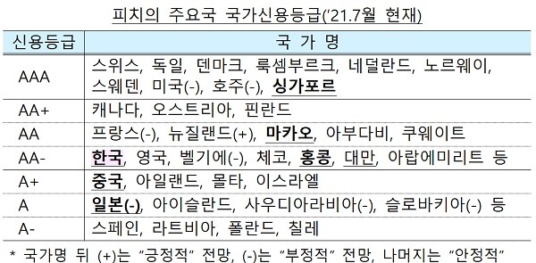또한 “한국 정부의 효과적인 팬데믹 관리, 수출 호조에 따른 강한 경제 회복이 당분간 한국의 신용도를 지지할 전망”이라고 진단했다.