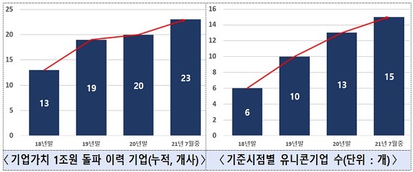 이번에 추가 파악된 유니콘기업들을 포함하면 비상장 기업가치 1조원 돌파한 이력이 있는 기업은 23곳으로 늘었다.