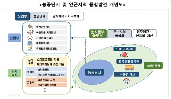 또한, 패키지 지원과 병행해 농식품부의 농촌생활권 재생 지원사업, 국토부의 주거플랫폼 조성 등 주변지역 지원 사업을 연계해 농공단지와 농공단지 주변 지역 활성화의 시너지를 창출할 계획이다.