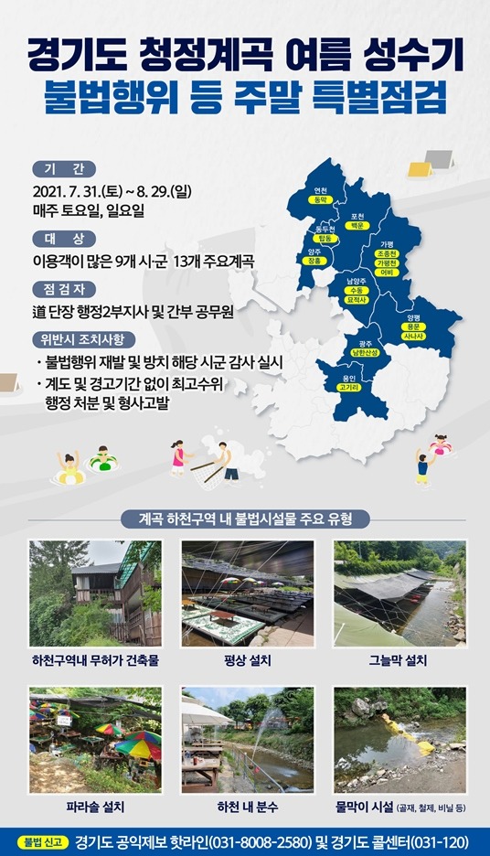 최근 여름 휴가철을 맞아 경기도는 특별 점검반 가동, 무관용 대응 등 불법행위 완전 근절을 위한 고강도 대응책을 추진한다.