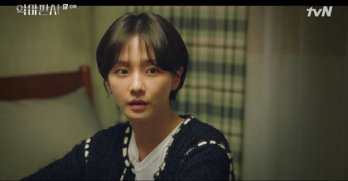 지난 1일 방송된 tvN 토일드라마 '악마판사'(극본 문유석/연출 최정규/제작 스튜디오드래곤, 스튜디오앤뉴) 10회에서는 윤수현(박규영 분)이 무고한 시민들을 괴롭히는 죽창(이해운 분)을 체포함과 동시에, 강요한(지성 분)에게 동요된 듯한 김가온(진영 분)에 복잡 미묘한 감정을 느끼는 모습이 그려졌다.
